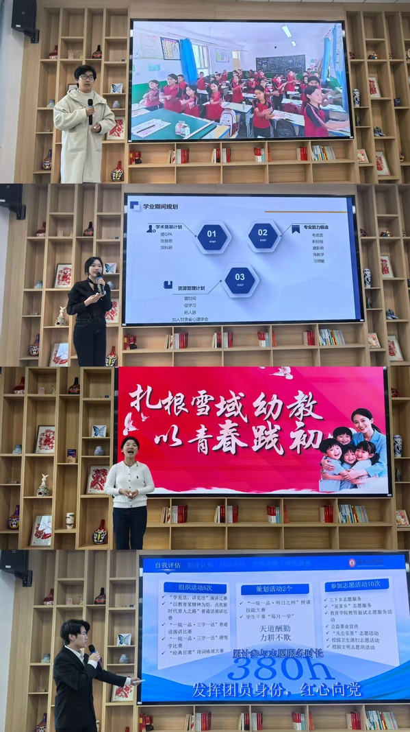 比赛中,选手们围绕自我认知、职业定位、发展路径及行动计划等核心维度展开精彩展示,内容涵盖数学教育、学前教育、心理健康教育等多个专业方向。评委老师从职业目标清晰度、学习实践行动力、优化改进可行性等关键指标进行细致点评,同时与选手积极互动交流,为同学们提供了极具针对性的成长建议。现场氛围热烈融洽,观众不时为选手们的精彩表现送上阵阵掌声。
