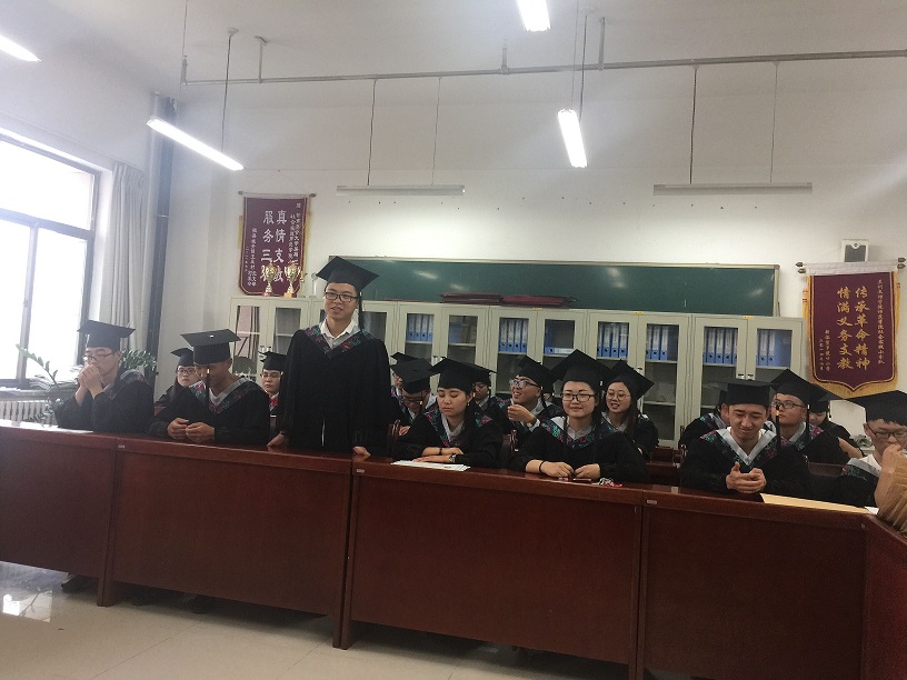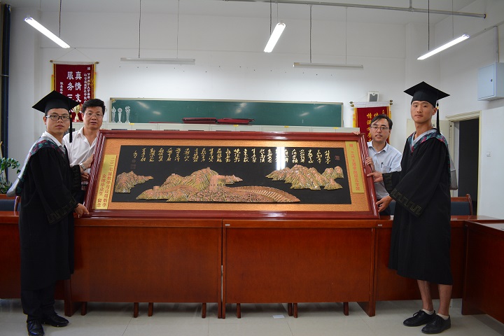 最后,毕业生代表向学院赠送牌匾作品《沁园春�雪》。学院党总支书记张明荣、院长董小平代表学院接收礼物,并对全体毕业生表示感谢。