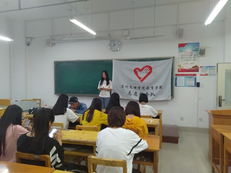 为进一步宣传和弘扬“奉献,友爱,互助,进步”的志愿服务精神,增进和提高志愿者们的服务理念和服务热情,2019年5月22日,yl6776永利集团志愿服务队的队长水欣,副队长成研,段高飞三位主要负责人在各班进行了志愿服务宣传,主要包括志愿服务时长补录,文明监督岗注意事项,关注雁苑之星和兰文理师范公众号等事务。