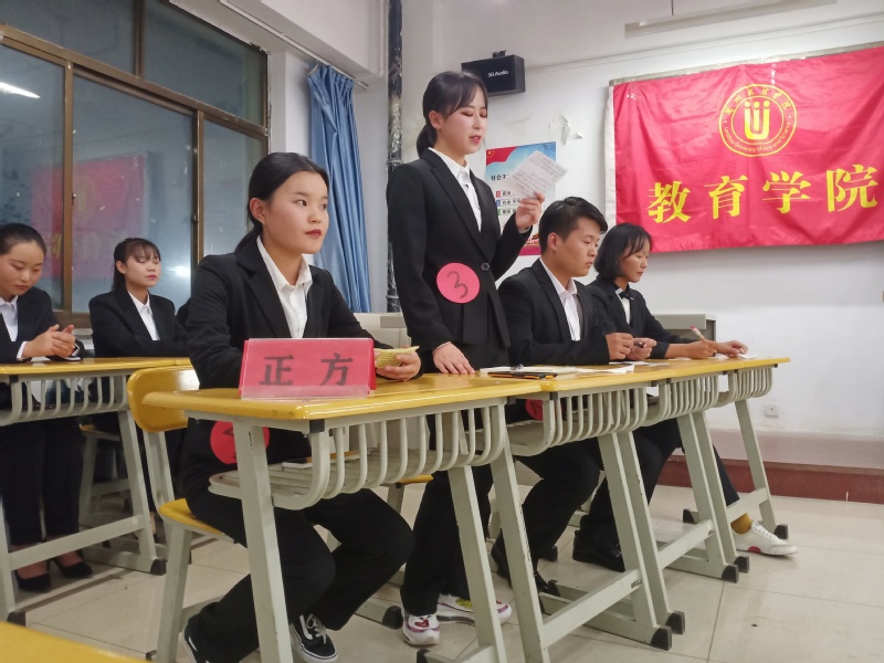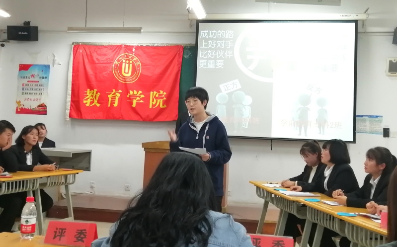 主持人首先介绍了到场评委及嘉宾,然后介绍了第1场比赛的两支辩论队伍,正方学前教育本科1班持“成功的路上好对手比好伙伴更重要”的观点,而反方学前教育专科2班持“成功的路上好伙伴比好对手更重要”,接着双方1号辩手分别就本方辩题进行立论陈词。在现场辩驳环节中,正方紧扣主题,反方据理力争。双方辩友剖析透彻,引经据典,一度将现场气氛推向高潮。在短暂而精彩的观众提问环节后,正反双方各抒己见,最终反方学前教育专科 2班以65分的成绩取得胜利,崔红娟同学被评为本场优秀辩手。