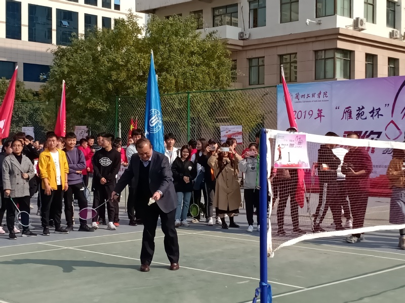 为丰富大学生课余文化娱乐生活,增强同学们的身体素质,体现当代大学生积极进取的精神风貌。永利官网于11月7日中午12:00在南校区运动场举办了“2019年雁苑杯羽你相约羽毛球赛”的开幕式与第一场比赛。