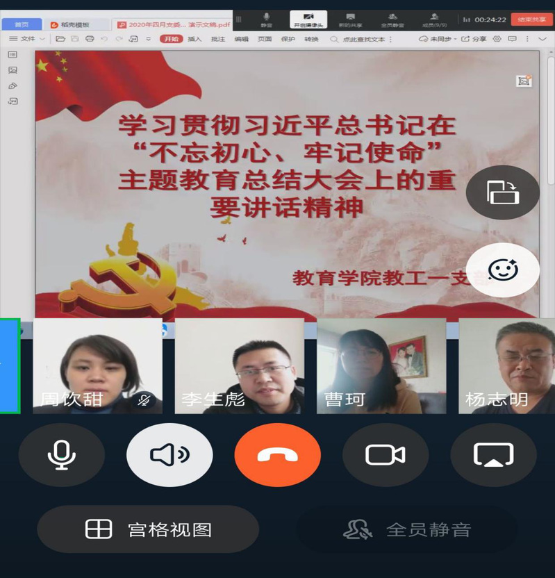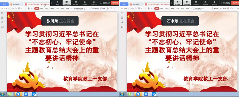 4月17日,yl6776永利集团教工一支部通过钉钉视屏会议的形式开展了学习习近平总书记在“不忘初心,牢记使命”主题教育总结大会上的重要讲话的学习和专