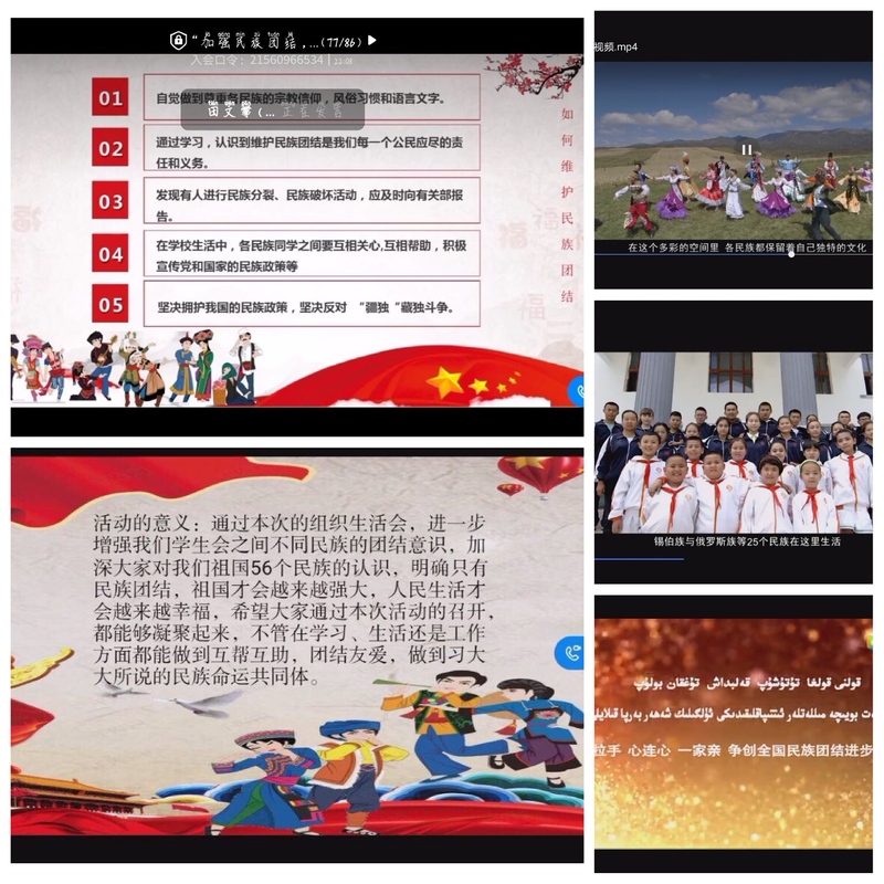 本次组织生活会首先学生会主席田文攀向同学们提出一些关于民族分布和国家的民族政策的基本知识,同学们都积极互动,踊跃发言。接下来观看《民族团结微视频》了解了维护民族团结的故事,田文攀向学生会成员详细介绍了“如何维护民族团结”的几点要求,比如自觉做到尊重和维护各民族的宗教信仰、风俗习惯、语言文字,坚决拥护民族政策,反对“疆独”“藏独”斗争等。作为祖国的一份子,我们要维护国家利益,从身边的小事做起,互相尊重,和谐相处,反对任何分裂祖国的行为。活动在歌曲《爱我中华》中接近尾声:我们要以“中华民族一家亲,同心共筑中国梦”为目标,多形式开展民族团结进步宣传教育活动,加强各民族同学交往交流,为加快建设幸福美好中国凝聚人心,汇聚力量。