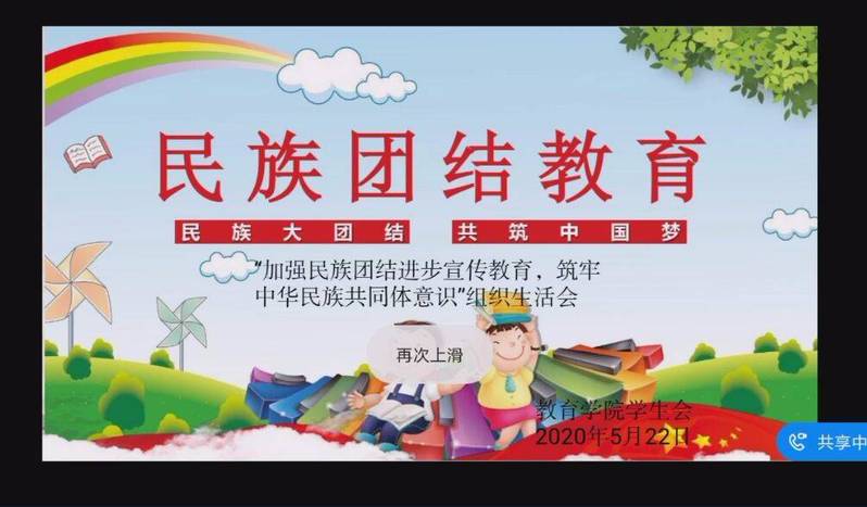 为进一步加强民族团结,弘扬民族精神,铸牢中华民族共同体意识,yl6776永利集团分团委遵照学院党总支要求于2020年5月22日中午召开“加强民族团结进步宣传教育,铸牢中华民族共同体意识”线上组织生活会,本次活动由学生会主席田文攀主持,全体学生会成员参加本次活动。