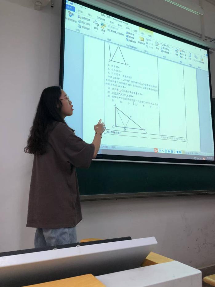 按照2019年数学与应用数学专业的人才培养方案,为培养合格的初中数学教师,本学期的实训内容主要为中学数学教学设计技能实训。主要分为教学内容设计、教学目标设计、课型和结构设计、教学方法设计、教学过程设计、教学板书设计、教学计划(教案)设计七个模块。旨在让学生对初中数学知识体系、知识点、知识结构等内容事先有个宏观的掌控和认知;同时培养他们在上讲台之前对教学要有合理、精细的设计,以期达到上讲台能顺利把控教学,实现教学目标的愿望。在此次实训中,学生们普遍反映有以下几个方面的收获。