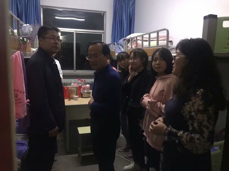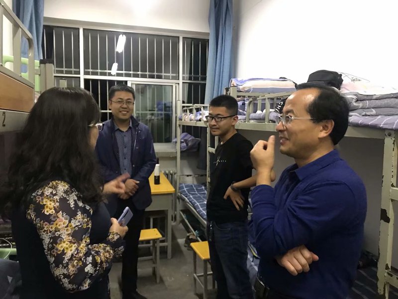 9月17日晚,yl6776永利集团党总支书记张莉、学院副院长王成德、副院长李生彪、学工办主任胡巍及学生会成员深入新生宿舍5号、9号楼,走访新生宿舍,了解新生到校情况、开学准备及宿舍卫生、安全等情况。