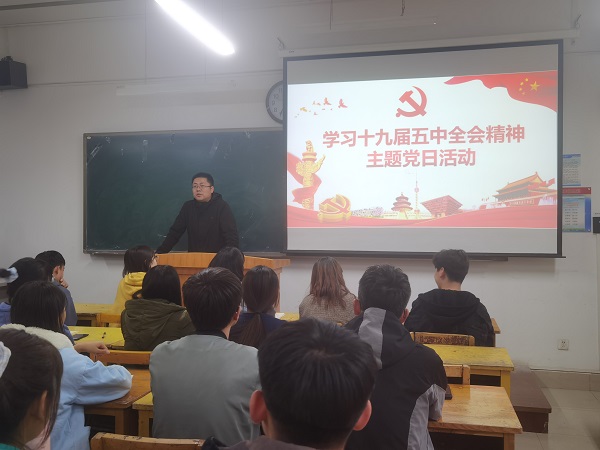 活动中,支部书记曲丽蓉同志带领大家学习了习近平总书记的重要讲话和全会审议通过的《中共中央关于制定国民经济和社会发展第十四个五年规划和二〇三五年远景目标的建议》,充分认识到这是全面建设社会主义现代化国家的纲领性文献,为实现第二个百年奋斗目标和中华民族伟大复兴的中国梦提供了战略指引。在交流中,18级数学1班宋子腾发言说:自己来自武都宕昌县,以前该县农民人均收入和城镇人口人均收入都在倒数第一、二徘徊,是科技创新的力量让这个贫困县面目一新,而作为该县的一名大学生,应该主动承担起历史赋予当代青年的责任,为全面建成小康社会贡献自己的一份力量。17级数学2班杨春昊也表示作为当代高校大学生,将以更高的要求鞭策自己,不断充实自我,发现自身建功立业的空间,激发接续奋斗的历史使命和责任担当。