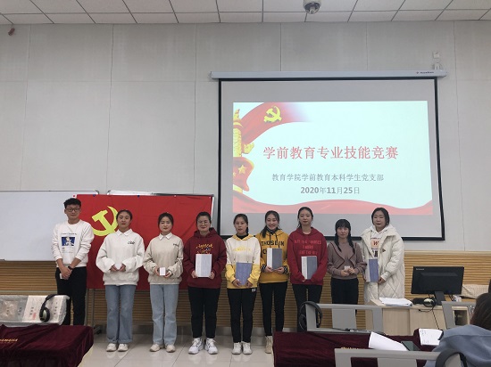 为深入贯彻学校党委要求,学前教育本科学生党支部结合本专业特色,于2020年11月25日在艺苑楼音乐教室开展了以“学习贯彻十九届五中全会精神暨学前教育专业技能竞赛”为内容的主题党日活动,实习党员于线上参会,教育学院党总支书记张莉、组织委员张嘉穗、专科支部党员王璐列席并观摩。