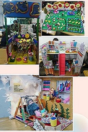 此次展览共展出手工作品40余幅,作品围绕幼儿的年龄特点和身心发展的特征,通过手工墙饰和区角设计的形式把幼儿环创作品特色展现的淋漓尽致,每一个同学的作品都进行了展示,同时每一个作品都是可以供每个班幼儿园小朋友至少一节课教学使用,材料的准备都是可以更换并添加使用的,同学们在设计和制作中,充分发挥了各自的潜力,也体现了团队的智慧,每一个作品都浸入了每个同学的汗水,表现出学前教育学生扎实的手工制作技能。