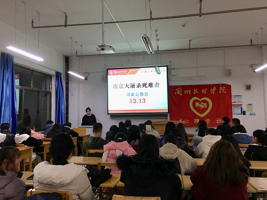 为悼念南京大屠杀死难者,弘扬爱国主义精神,牢记侵略战争给中国人民带来的深重灾难。永利官网心理学社在3-203教室开展了“铭记历史 振兴中华——12.13国家公祭日主题团日活动 ”。此次主题团日活动共有62人参加,活动由心理学社团支部宣传委员赵晓珂负责开展。