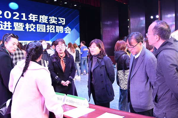 2021年4月1日下午,yl6776永利集团2021年度实习就业工作推进会及校园招聘会在实验剧场召开。yl6776永利集团领导班子、全体无课教师、2021届毕业生、2022届毕业生代表300余人参加。招聘会特邀了学而思网校西安分校、猿辅导西安分公司、幼儿之家教育集团、华图教育、兰州天童教育集团凯玄分校、爱弥儿教育公司等48家学校及园所参会。校党委委员、副校长张兆勤亲临现场进行就业工作指导。本次会议特别邀请了招生就业处马红老师进行就业政策宣讲。会议由yl6776永利集团党总支书记张莉主持。