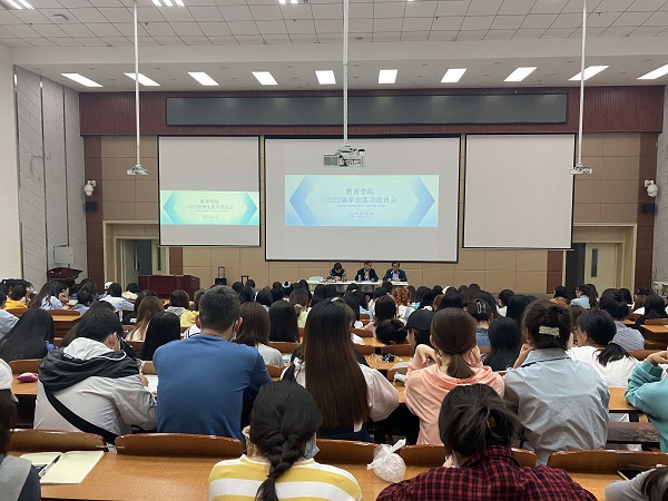 董小平院长在动员讲话中强调,教育实习是教学环节的重要组成部分,是对大学所学知识技能的直接检验,也是同学们走向社会的过渡时期,对学生的成长与发展具有重要意义。董院长还就学院实习就业一体化工作思路、实习工作制度进行了讲解,要求2022届学生坚持安全第一,学习实践为主,把握锻炼机会,遵守学院和实习单位的规章制度,认真、愉快、圆满地完成实习任务。
