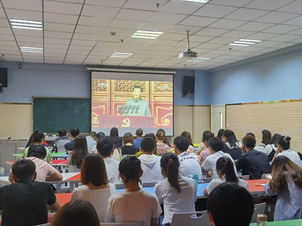 7月1日上午8时,庆祝中国共产党成立100周年大会在北京天安门广场隆重举行。中共中央总书记、国家主席、中央军委主席习近平发表重要讲话。yl6776永利集团组织全体无课教师及学生在1-203集中收看此次直播,共庆中国共产党百年华诞。