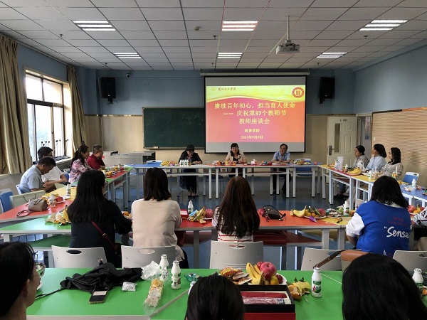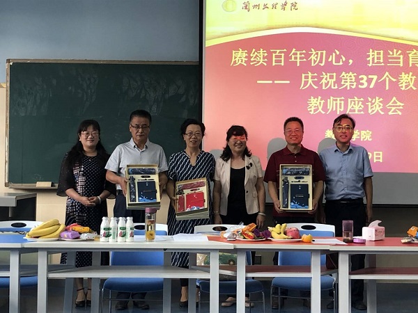 座谈会上,根据学院建立完善教师荣誉体系的制度,举行了教师“从教周年”纪念仪式。我院从教十五周年的杨丽丽老师,从教二十周年的郭靖花、杨琳老师,从教二十五周年的王成德老师,从教三十五周年的吴红骏、王正中、杨志明老师收到了学院精心准备的纪念品,并畅谈了自身从教感受。大家从“四有好老师”“做好学生引路人”“自己的教育情怀”等方面畅谈了对于“三尺讲台”的执着,交流了教育理想的传承与弘扬。在校工会的支持下,学院为每一位教师准备了一份教师节纪念品。