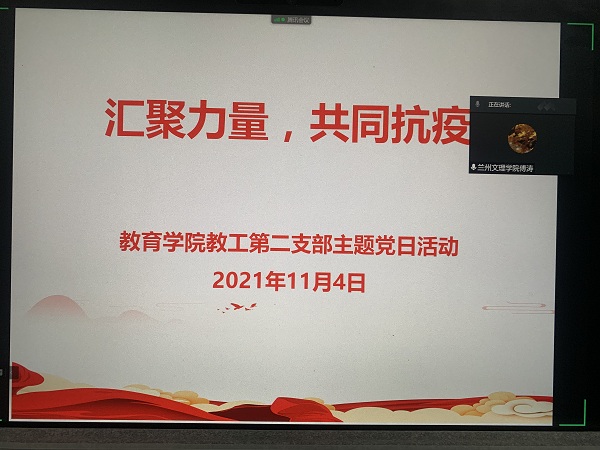 2021年11月4日19:00点,yl6776永利集团教工第二党支部通过腾讯会议形式,举行了线上“师生面对面,汇聚力量,共抗疫情”主题党日活动,本次主题党日活动是支部为帮助学生解决在线教学过程中出现的学习困惑、在校园封闭管理期间出现的心理困扰而组织。yl6776永利集团教工第二党支部全体党员教师及yl6776永利集团学生第二党支部的学生党员、入党积极分子,2021级学前教育本科专业、2021级心理咨询专业的班委约90余人参加了活动。活动由支部书记傅涛教授主持。