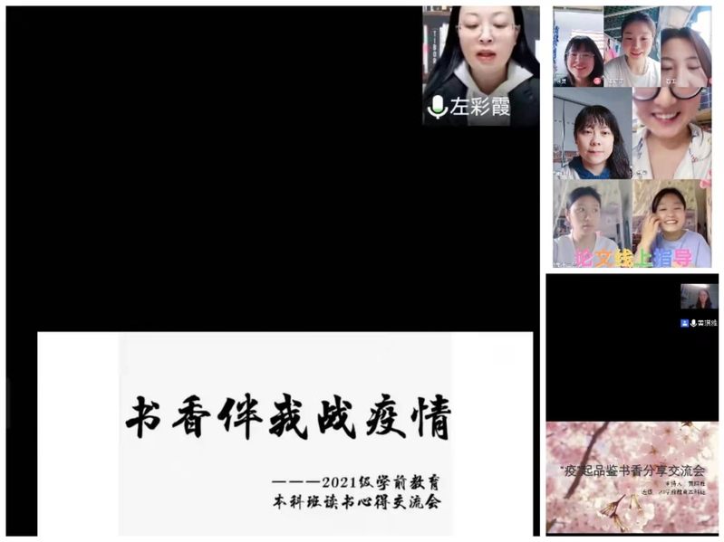 二是书香熏染心态,静心共抗疫情。疫情突发后,图书馆快速响应学校防控指挥,为避免人员聚集可能引发的交叉感染风险,最大限度保障读者健康,故紧急闭馆。为继续激发同学们的阅读兴趣,缓解学生疫情期间的焦虑情绪,傅涛教授、左彩霞、黄琪雅老师带领班级同学举办了线上读书分享交流会。老师们通过本次阅读分享交流会感叹道:“同学们将读书与抗疫紧密结合,从心得体会拓展到心态调整。” “本次班级读书会让学生亲近书本,喜爱书本,尤其是封校后同学们都会存在焦躁情绪,但通过读书能缓解压抑的情绪,滋养心灵。”此次读书分享会也激发了师生党员在疫情防控期间的读书热情,为大家建立起有效的沟通交流平台,让“爱读书、读好书、善读书”思想观念更加深入师生心中,培养同学们静心学习的良好习惯。