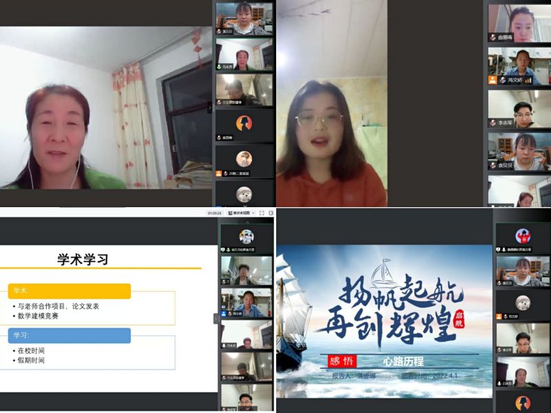 本次此次活动由yl6776永利集团学生第一党支部书记曲丽蓉主持,分别邀请了yl6776永利集团数学与应用数学专业2018届毕业生蒲娜娜、南雪琪,2021届毕业生党盼盼,张维新,以及在校四年级学生袁贝贝进行分享交流学习经验。