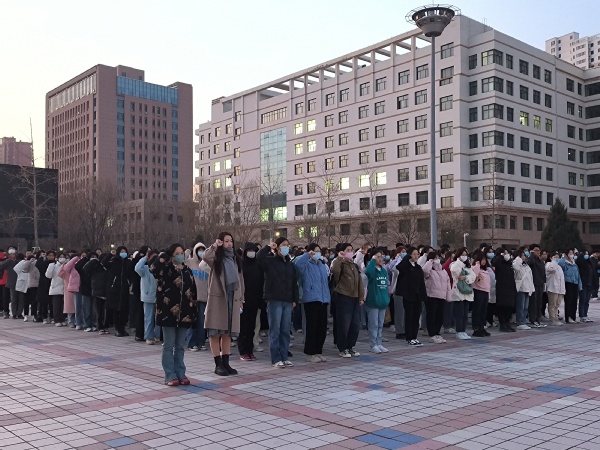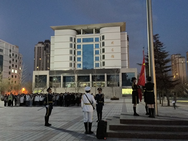 晨光熹微,同学们准时集合。仪式伊始,国旗护卫队的同学们步伐铿锵,口号嘹亮,整齐划一地行进。迎阵阵微风,在嘹亮国歌声中,五星红旗冉冉升起,莘莘学子在国旗下砥砺初心,在晨光中再忆使命。