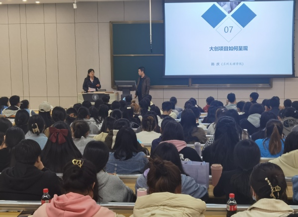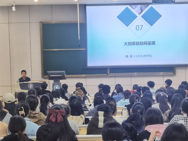 陈庆老师以“大创项目如何呈现”为题,以专业的视角,立足地域特色和学生实际,结合具体案例,围绕“互联网+”大学生生创新创业大赛项目“做什么,如何做”,详细讲解了项目团队组建、创业计划书撰写等要领。