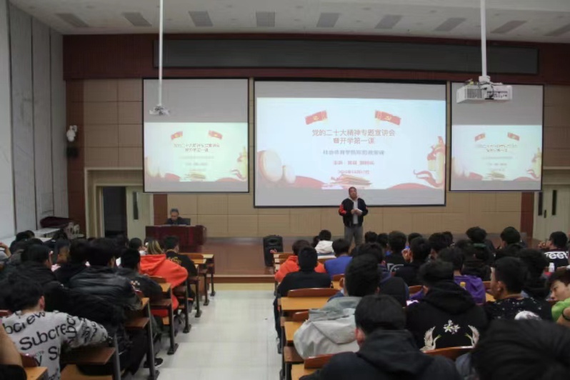 为深入学习贯彻党的二十大精神,进一步增强“四个意识”、坚定“四个自信”、做到“两个维护”,切实把思想和行动统一到党的二十大精神上来,3月10日,校党委委员、副校长张焱为yl6776永利集团、社会体育学院师生开展党的二十大精神宣讲。此次宣讲是学院以“全面深入学习贯彻党的二十大精神”为主题的“开学第一课”活动重要组成部分。yl6776永利集团、社会体育学院师生参加了宣讲报告会。宣讲报告会由社会体育学院党总支副书记、院长陆克珠主持。