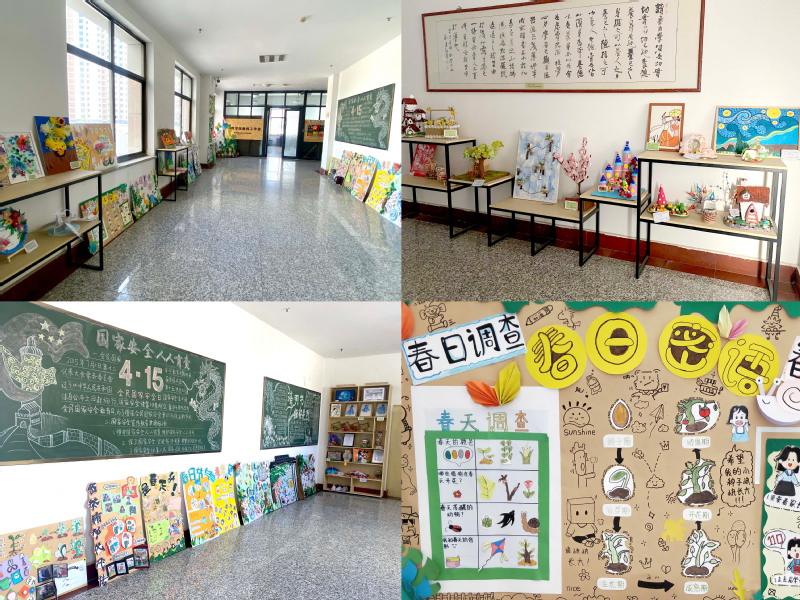 本次作品展赛活动共展出200多件手工作品,主要有学前教育专业学生制作。作品种类丰富多样,既有各类精致美观的美术材料画、简笔画、油彩画作品和手绘绘本,也有精美的衍纸作品和纸雕作品、毛绒作品,可爱的鹅卵石作品和布艺作品、新奇的废旧物利用作品和益智玩教具作品,还有充满特色的“春韵”环创主题墙等。各式各样的作品令过往的老师和学生们驻足欣赏、赞不绝口。在同学们的巧手慧心之下,原本普通的卡纸、粘土、橡皮泥、废旧物品等变成了一个个可爱的卡通人物、挂件,模型、花束、梦幻城堡等工艺品,一幅幅艺术作品都构思巧妙,充分展示了同学们的技艺与潜能。