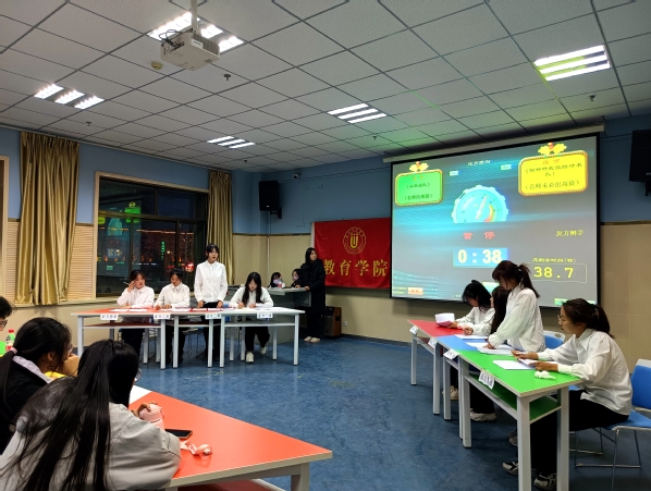本次活动以班级为单位进行队伍组建,共计六支队伍参加比赛,各辩论队在初赛环节通过抽签进行两两对决。最终23级学前教育本科班“从容应队”代表队和23级数学与应用数学班“你听听我说的对不队”代表队进入决赛。在12月4日晚的决赛中,辩手们针对“名师是否出高徒”的辩题展开辩论。在辩论赛场上,双方辩手就论题发表自己的看法,有理有据的反驳对方观点。自由辩论环节双方唇枪舌剑、妙语连珠,将比赛推向了高潮,同时也赢得了现场观众热烈的掌声。经过评委客观分析与讨论评选,正方“从容应队”代表队获胜。赛后,李锦钰老师对双方辩手进行了点评,强调同学们要善于发现辩题中的漏洞,善于观察,多方位思考问题。