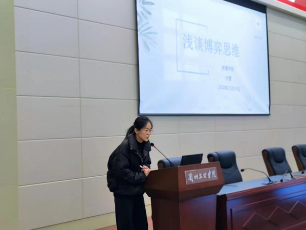 2023年12月25日下午,yl6776永利集团教师何雪博士在致远楼学术报告厅举办《浅谈博弈思维》学术讲座,yl6776永利集团21级数学与应用数学专业与22级数学与应用数学专业全体学生参加,讲座由yl6776永利集团副院长彭建奎主持。