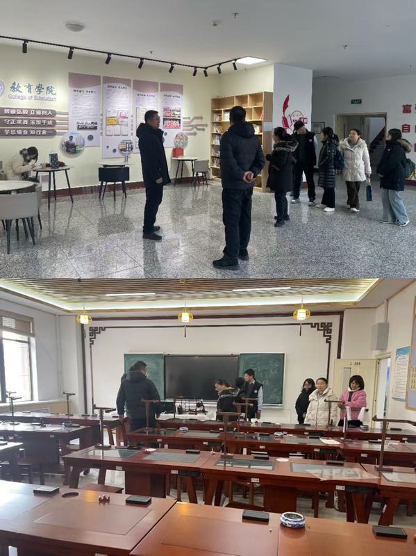 吕梁学院教师教育系一行还参观了学院实训室、走廊文化建设和学生实训作品。