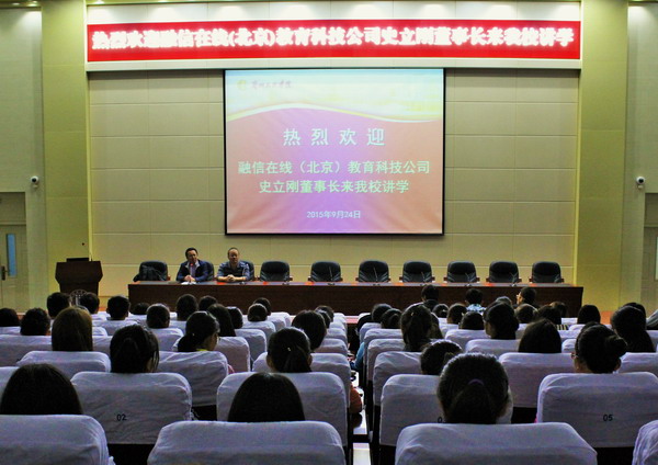 在我校秋季学术活动月开展之际,2105年9月24日下午,师范学院邀请融信在线(北京)教育科技公司史立刚董事长,在我校学术报告厅为2013级、2014级数学与应用数学专业300余名学生举行了《大数据时代下学生实习就业一体化》学术报告。报告会由师范学院副院长石光乾主持。