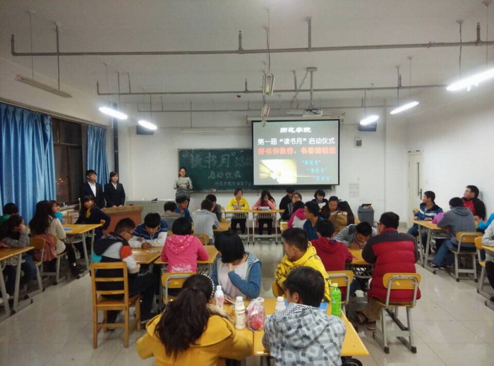 为进一步深化开展学风建设,形成良好的学习氛围,师范学院分团委联合各班开展“读书月”活动。“读书月”活动启动仪式在1-504举行。