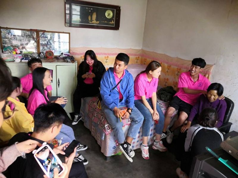 今天,我们小分队成员给孩子们上游戏课。孩子们我们他们独创的游戏,用竹竿做游戏。孩子们欢乐的笑声在山中回荡,而天真的笑脸也永远刻在我们心里。与孩子们相处时间越长,越能感受到孩子们烂漫与无忧无虑。昨晚在与孩子们的交流中,我们得知在村庄中,有这样一位老人默默地在生活没有儿女,孤身一人。于是上午我们决定去看望老人并为老人买一些生活用品。在孩子的带领下,我们来到老奶奶的家中。我们看到奶奶的家中,少有电器,非常朴素。奶奶给我们讲起过往的经历,可以看到奶奶虽然生活艰苦,但对生活充满热爱。我们为奶奶唱歌,捶背,给奶奶带来了欢乐。