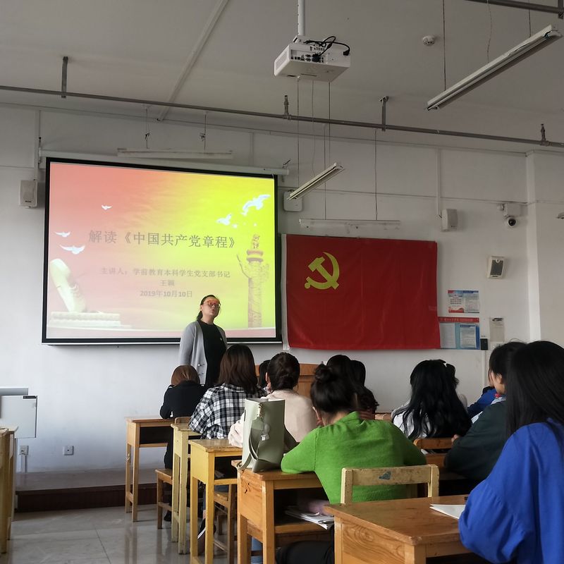 为使全体党员深入贯彻执行党章,我校yl6776永利集团学前教育本科学生党支部于2019年10月10日中午12点在3-203召开“解读《中国共产党章程》”的党课培训。参加本次党课培训的有支部书记王颖,以及学前教育本科支部全体党员、预备党员。