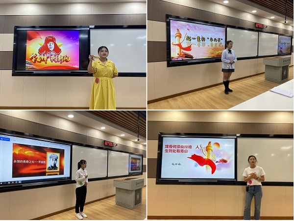 本次活动是我院结合党史学习教育,开展“党建工作质量提升年”活动的重要组成部分,初赛在全院范围内开展,共有100名学生参赛,初赛作品上传至“学习通”平台,由老师们进行线上评审,遴选出决赛选手。活动立足于我院专业实际,通过以“讲”促学的方式,使广大学生从党的历史和优良传统中汲取智慧,在学生中营造崇尚英雄、学习英雄、捍卫英雄、关爱英雄的浓厚氛围,引导学生扣好人生第一粒扣子,在红色基因的传承中汲取营养,凝聚力量,更加坚定理想信念,感知时代责任,自觉用理想信念书写青春的华彩乐章。