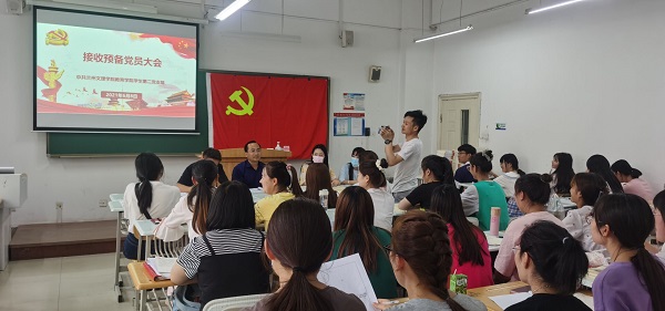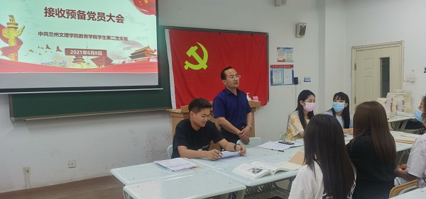 副院长王成德同志代表总支在总结中祝贺安婷婷等10名同志为预备党员,希望各位党员在学习生活中亮明身份, 严格要求自己,通过党史学习,充实自己, 学史明理、学史增信、学史崇德、学史力行,成长为优秀共产党员。