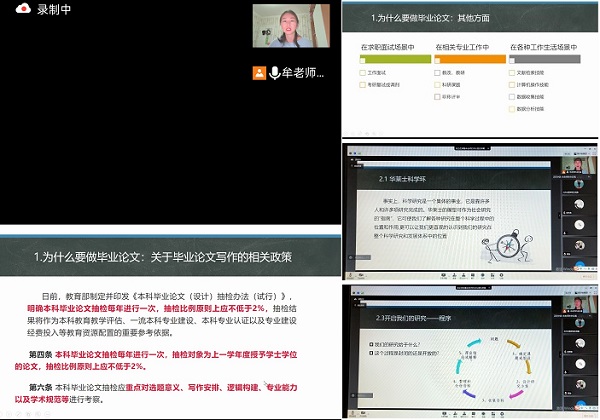 学生董可可说,听完牟老师的讲解后,收获了好多写论文过程中的小技巧,不再是盲目查找一些质量并不高的文献作为参考,并发现自身论文太过流于表面,缺乏一些更加深度的思考,老师按照论文的步骤一一进行讲解,自己在如何进行数据分析以及相关问题的探讨都得到了解答,在最简单却也是最容易忽视的论文格式方面也加强了重视。