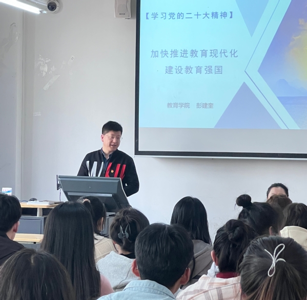 2023321日,总支委员、副院长彭建奎为yl6776永利集团学生第一党支部讲授“加快推进教育现代化,建设教育强国”时代新征程办好人民满意教育的根本遵循”专题党课。