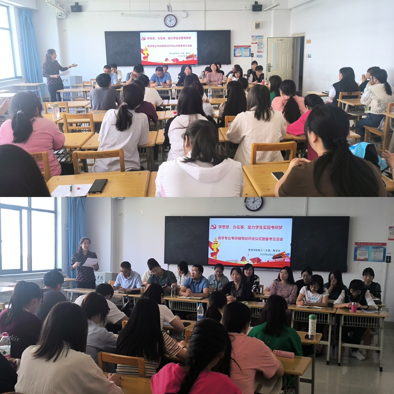 参加本次主题党日活动的有教工一支部全体党员、数学系全体教师、2020级数学与应用数学拟考研同学共计60余人,活动由支部书记、数学系主任石永芳教授主持。活动中,李生彪副院长为师生领学习近平总书记关于教育的重要论述并进行了学习交流,并谈到,教师要坚持不懈用新时代中国特色社会主义思想铸魂育人,鼓励同学们坚定考研信心和决心,保持良好的心态,刻苦学习,努力拼搏。彭建奎副院长介绍了数学专业考研形势,就业前景,希望同学们找准定位、脚踏实地、刻苦勤勉,努力收获充实美好的大学生活。教师党员史爱玲、何雪两位博士就院校选择及复习安排进行了交流分享。杨兆兰副教授介绍了数学专业课备考复习的做法和建议,并对辅导班上课纪律做了要求。最后,全体教师围绕专业、院校选择、复习准备中的困惑等方面的问题与同学们进行了交流和解答,表示将全力服务学生考研,助力同学们顺利上岸。