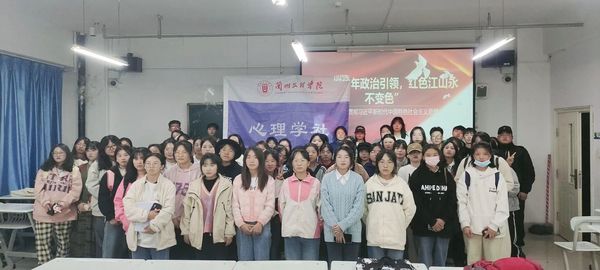 为了进一步提高学生政治觉悟,帮助学生树立正确远大的理想抱负,心理学社于2023年10月30日晚在明德楼504教室举办“加强青年政治引领,红色江山永不变色”团日活动,心理学社100余成员参加了本次团日活动,活动由李颖同学主持。