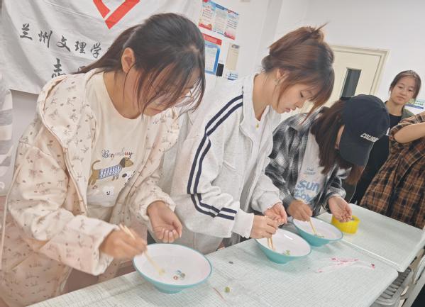 活动开始,“仙人吹气”环节吸引了众多同学参与,大家利用中秋成语通过爆破音的发音吹动特制道具蜡烛,体验传统节日神秘与乐趣的同时,吹散了一年的烦恼与尘埃。紧接着,“海底捞月”游戏更是将现场气氛推向高潮,同学们手持筷子,竞相夹起水中的“月亮”(弹珠),在欢声笑语中,不仅锻炼了手眼协调能力,还深刻体会到了中秋团圆的寓意。