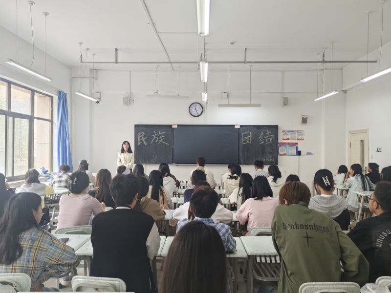 班会上,各班通过播放民族团结纪录片、分享民族团结故事、开展知识问答等形式,生动展现各民族交往交流交融的历史与现实。在互动环节,同学们踊跃发言,结合自身经历,讲述身边的民族团结感人事迹,现场气氛热烈。其中,2024级小学教育班的同学分享道:“各民族就像石榴籽一样紧紧抱在一起,我们要从身边小事做起,维护民族团结。”