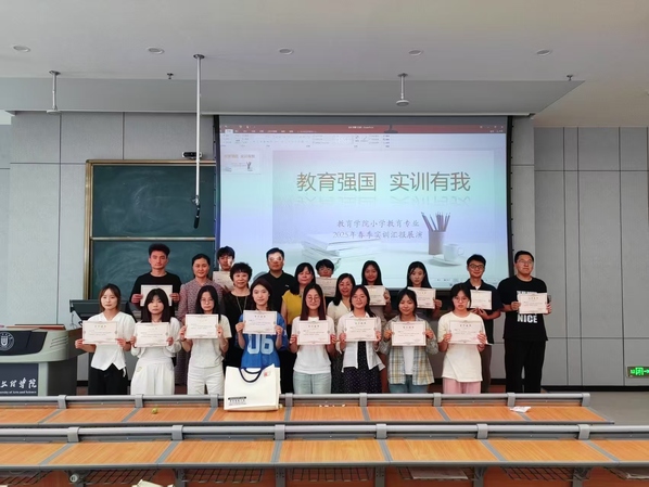 为了进一步优化小学教育专业教学,检验实践教学效果,展现学前教育专业综合实训成果,yl6776永利集团于6月27日下午在文昌楼203教室举行“教育强国实训有我”2024—2025学年第二学期小学教育专业实训汇报展演活动。yl6776永利集团院长李生彪、小学教育专业全体教师及学生参与了本次展演活动。