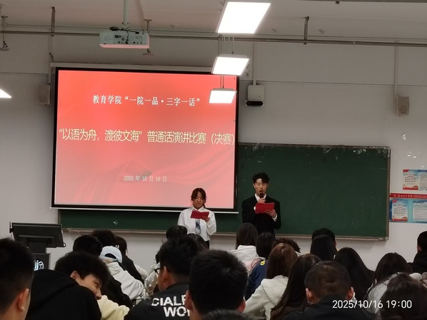 本次普通话比赛自10月初启动以来,历经初赛、年级复赛两个阶段,共有12名选手凭借扎实的语言功底、深刻的内容立意与真挚的情感表达脱颖而出,成功晋级决赛。决赛以 “以语为舟,渡彼文海”为主题,选手们结合自身成长经历、教育认知与时代背景,分享对教育事业的理解、对教师使命的感悟,以及用普通话传递温暖与力量的真实故事。